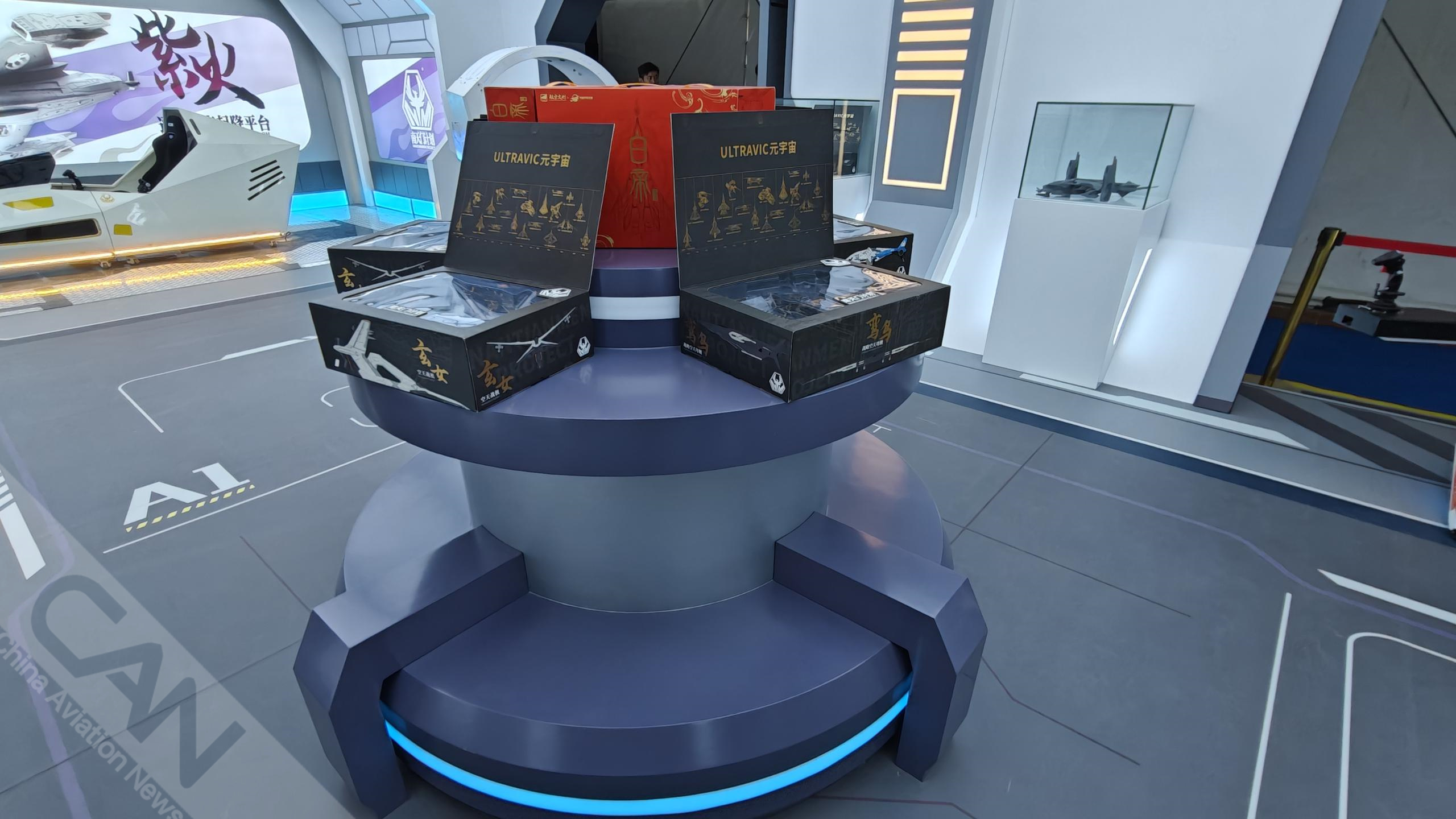 科幻IP“南天门计划”亮相第七届天津直博会,除首次展出的新机型“紫火”概念战机模型外,还展出一系列科幻产品。摄影:盖宇斌